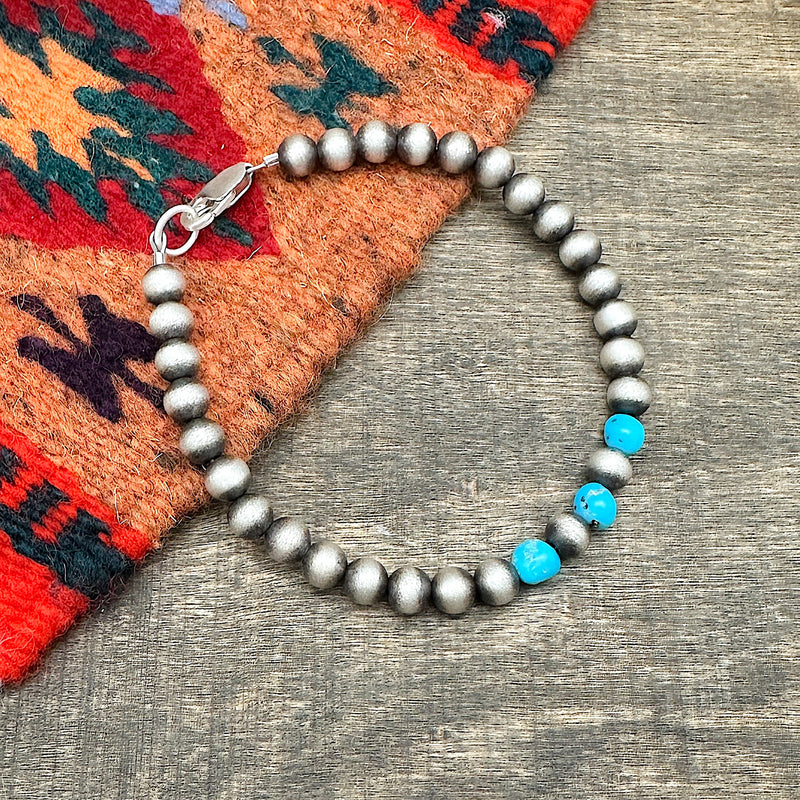 6mm Navajo Silver Pearl & Kingman Turquoise Bracelet